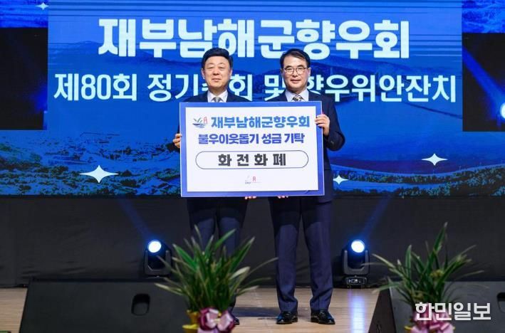 이번 성금은 지난 21일 제80회 재부남해군향우회 정기총회에서에서 불우이웃돕기 성금을 모아 기탁된 것으로, 지역 사회복지시설 9개소에 전달됐다.