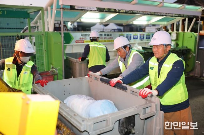 김완근 제주시장은 이날 새벽 구좌읍 청소차량 차고지를 찾아 청결한 제주시를 만들기 위해 힘쓰고 있는 청소차량 운전원과 환경미화원들을 격려하고, 가연성폐기물 수거 작업에 직접 참여했다.