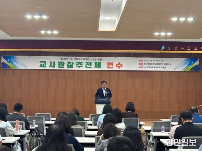 한민일보 서울포커스 임철현 기자 | 포항교육지원청은 10월 1일 포항교육지원청 대회의실에서 초ㆍ중등 영재교육업무 담당 교사 100여명을 대상으로 '2026학년도 영재교육대상자 선발을 위한 교사관찰추천제 연수'를 실시했다.
