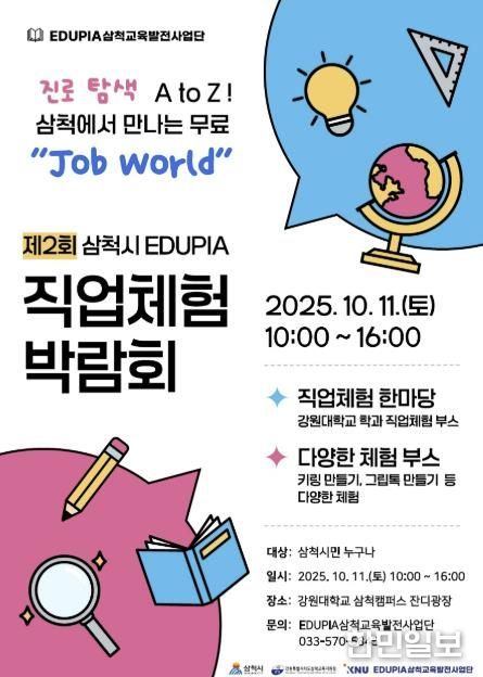 한민일보 서울포커스 임경복 기자 | 삼척시와 EDUPIA삼척교육발전사업단은 오는 10월 11일 오전 10시 강원대학교 삼척캠퍼스 잔디광장에서 ‘제2회 삼척시 EDUPIA 직업체험 박람회’를 개최한다고 밝혔다.