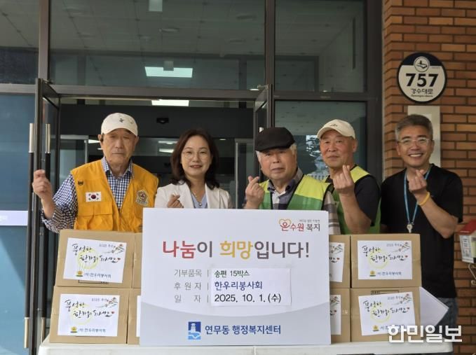 공순정 연무동장은 “매년 명절마다 잊지 않고 따뜻한 정성을 전해주시는 한우리봉사회에 감사드린다”며 “전달된 물품이 어려운 이웃들에게 따뜻한 명절을 보내는 데 도움이 될 것”이라고 말했다.
