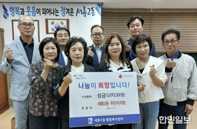 한민일보 서울포커스 진광성 기자 | 수원시 권선구 세류2동 주민자치회는 지난 10월 1일, 추석 명절을 맞이하여 이웃돕기 성금 507만원을 세류2동 행정복지센터에 기부했다.