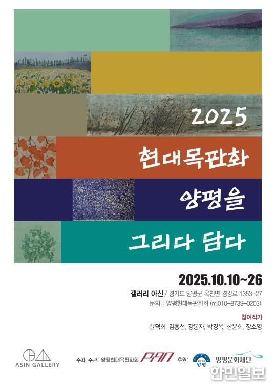 한민일보 서울포커스 차재만 기자 | 양평문화재단은 아신갤러리 10월 전시로 10월 10일부터 26일까지 ‘2025 현대목판화 양평을 그리다 담다 전(展)’을 개최한다.