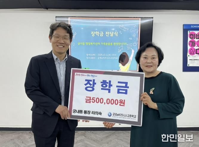 한민일보 서울포커스 임경복 기자 | 라의숙 군포시 궁내동통장협의회장은 10월 1일 군포e비즈니스고등학교에 장학금을 전달하며 지역 청소년들의 꿈을 응원하는 뜻깊은 나눔을 실천했다.