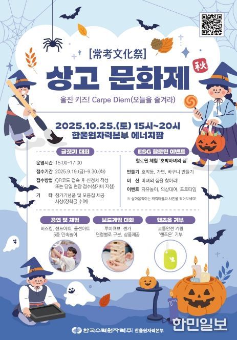 한민일보 서울포커스 김은금 기자 | 한국수력원자력(주) 한울원자력본부)는 10월 25일 15시 한울에너지팜에서 제2회 ‘한울 상고문화제 가을(秋)편’ '울진 키즈! Carpe Diem(오늘을 즐겨라)'를 개최한다.