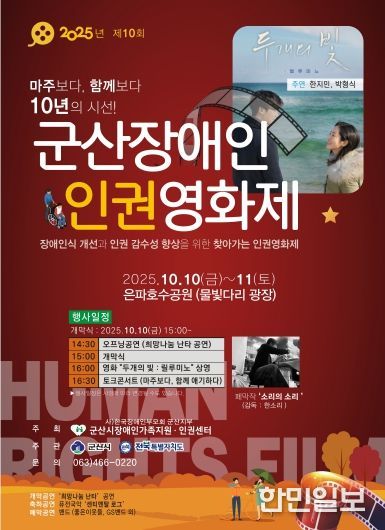 한민일보 서울포커스 김용택 기자 | 군산시 장애인가족지원인권센터가 10월 10일부터 11일까지 은파호수공원 물빛다리 광장에서 군산시민을 대상으로 장애인 인식개선 및 인권의식 함양을 위한 2025년 제10회 군산장애인인권영화제를 개최한다.