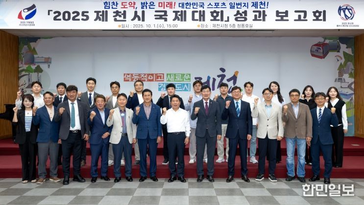 한민일보 서울포커스 김다남 기자 | 제천시는 지난 1일 제천시청 5층 청풍호실에서 '2025년 제천시 국제대회'성과보고회를 개최했다. 보고회에는 김창규 제천시장, 박영기 제천시의회 의장, 김경석 대한롤러스포츠연맹 회장(이상 공동조직위원장), 장재돈 대한체조협회 고문과 안성국 제천시체육회장(집행위원장), 오재성 제천시체조협회장, 최호열 제천시롤러스포츠연맹회장(이상 공동 사무총장) 및 유관기관, 단체장 3명과 종목단체 임원 및 회원 50여 명이 참석했다.