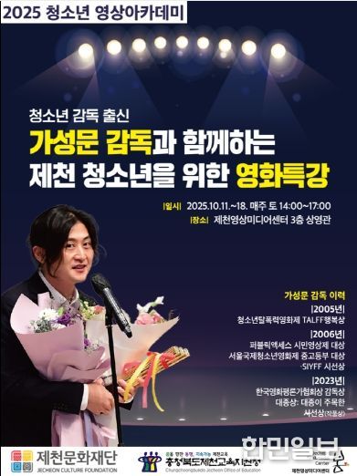 한민일보 서울포커스 김다남 기자 | 제천문화재단은 오는 11일과 18일 오후 2시 제천영상미디어센터 봄에서 ‘청소년 영상아카데미’교육생을 대상으로 가성문 감독과 함께하는 청소년 영화특강을 개최한다고 밝혔다.