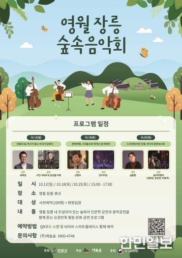 한민일보 서울포커스 진광성 기자 | 영월군은 오는 10월 12일, 18일, 25일 오후 3시부터 5시까지 세계유산 장릉 경내에서 ‘영월 장릉 숲속 음악회’를 개최한다.