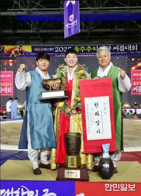 한민일보 서울포커스 최성훈 기자 | 울주군청 해뜨미씨름단 소속 김무호 선수가 7일 울산 울주군 울주종합체육센터에서 열린 ‘위더스제약 2025 울주추석장사씨름대회’에서 한라장사에 등극했다.