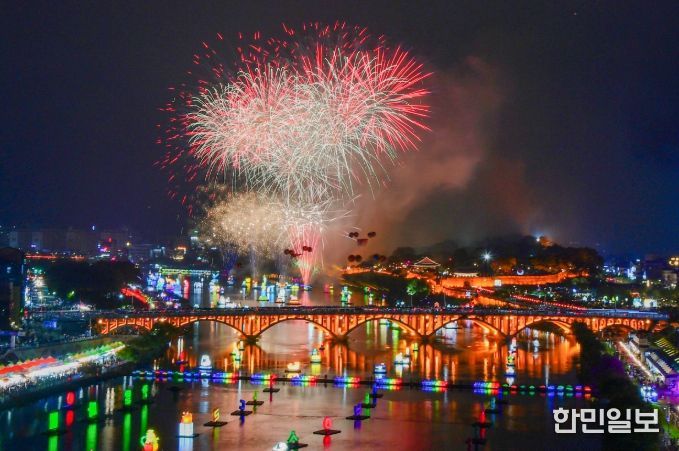 이날 개막식에는 남강과 진주성을 밝힌 7만여 유등과 함께 ‘3D 홀로그램 유등’, ‘수상 불꽃놀이’, ‘드론 라이트쇼’가 어우러지며 환상적인 가을밤을 연출했다.