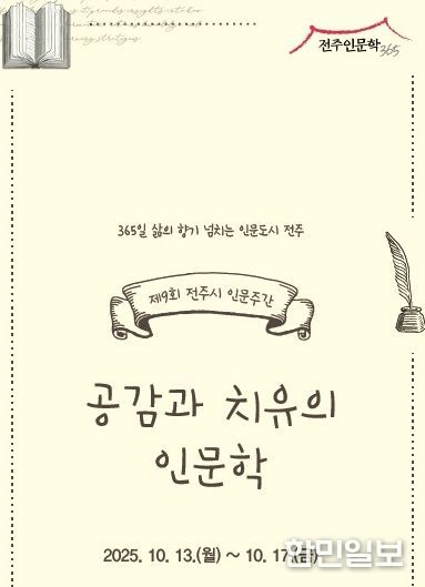 한민일보 서울포커스 김용택 기자 | 전주시가 시민들이 일상에서 다채로운 인문학을 즐길 수 있도록 인문주간 행사를 연다.
