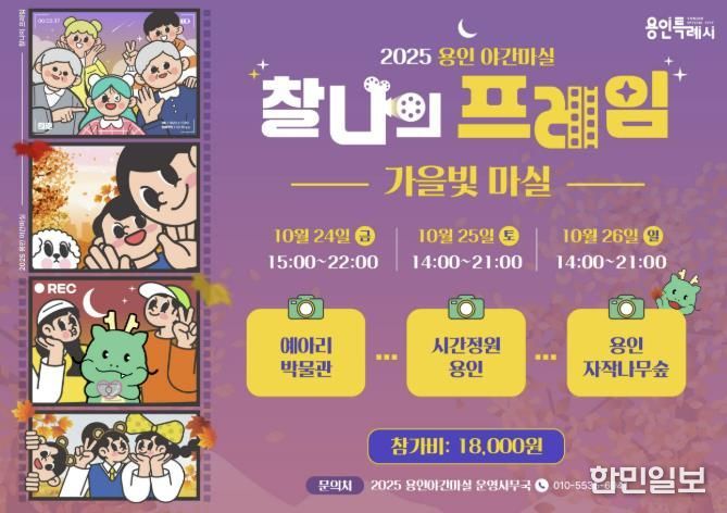 한민일보 서울포커스 김성윤 기자 | 용인특례시는 13일부터 15일까지 지역의 가을 야경을 만끽할 수 있는 ‘2025 용인 가을빛마실’ 참가자 315명을 모집한다고 10일 밝혔다.