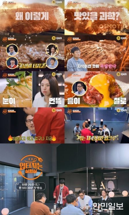 ENA ‘입 터지는 실험실’(연출 송가희)은 “왜 맛있을 과학?”이라는 주제로 입 터진 과학자들이 맛의 비밀을 실험하는, 입맛도, 수다도, 웃음도 터지는 세계 최초 과학 먹방 토크쇼다.