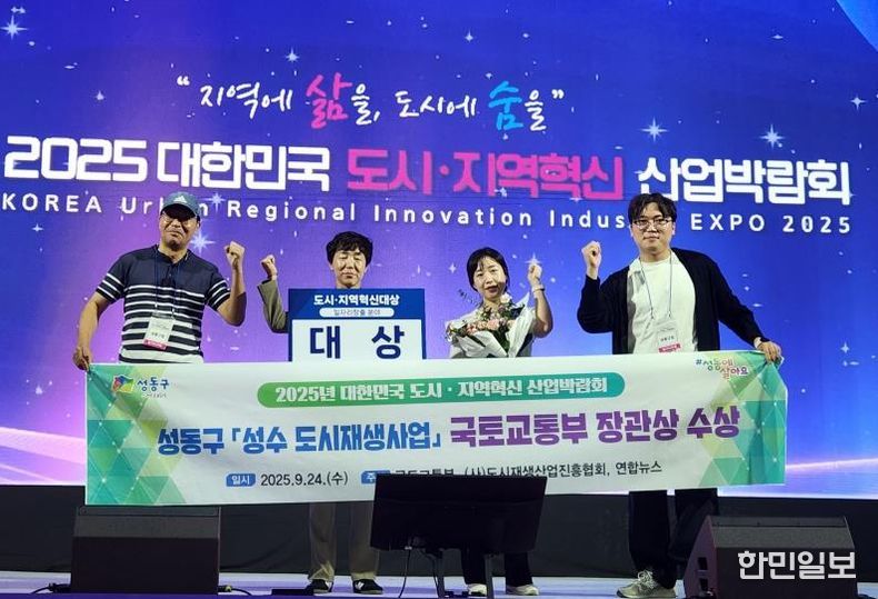 한민일보 서울포커스 임광현 기자 | 서울 성동구는 성수동의 비약적 발전을 이끈 ‘성수 도시재생사업’ 성과를 인정받아 ‘2025 대한민국 도시·지역혁신대상’에서 일자리 창출 분야 ‘국토교통부 장관상’을 수상했다고 밝혔다.