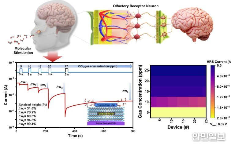 한민일보 서울포커스 박근원 기자 | 경상국립대학교공과대학 나노신소재융합공학과 박준홍 교수(생체모방 반도체 연구실) 연구팀은, 인간의 후각과 두뇌를 모방하여 다양한 환경에서 발생 가능한 극미량의 유해원을 인지하고 학습하는 뉴로모픽 반도체 기술을 개발했다.