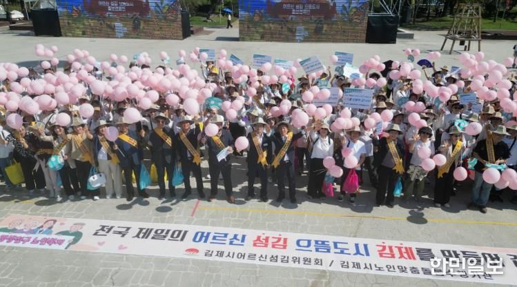 한민일보 서울포커스 박용남 기자 | 김제시는 김제시어르신섬김위원회가 제27회 김제지평선축제를 맞아 지난 10일, 노인맞춤돌봄서비스 수행기관 3개소(김제노인복지센터, 김제노인종합복지관, 성암노인복지센터) 250여명의 종사자들과 함께‘어르신이 행복한 도시 김제’를 만들어가기 위한 캠페인을 진행했다고 밝혔다.