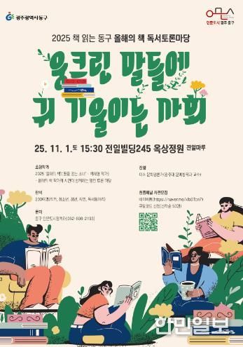 한민일보 서울포커스 박용남 기자 | 광주 동구는 오는 11월 1일 오후 3시 30분 전일빌딩 245 옥상정원(전일마루)에서 2025 책 읽는 동구 ‘올해의 책’ 독서 토론마당을 개최한다고 밝혔다.