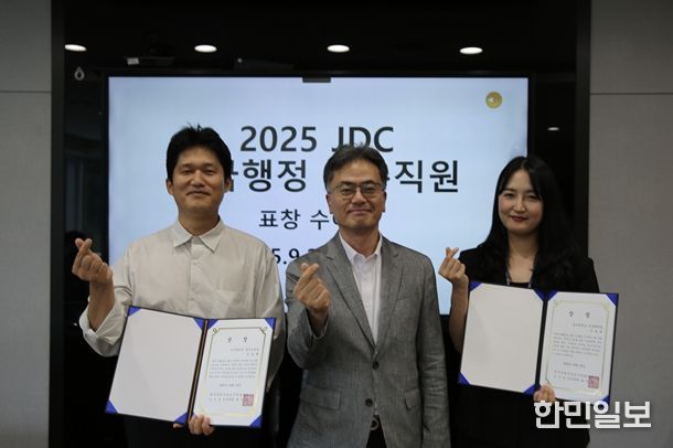 한민일보 서울포커스 임경복 기자 | 제주국제자유도시개발센터는 29일 본사 이사장실에서 ‘2025 JDC 적극행정 우수직원 선발’ 제 1회 시상식을 개최하고, 창의적이고 능동적인 행정으로 조직 혁신과 국민 만족도 제고에 기여한 직원 2명을 우수직원으로 선정·격려했다고 밝혔다.