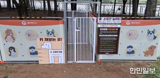 한민일보 서울포커스 임경복 기자 | 동두천시는 반려견과 시민이 함께 어울릴 수 있는 반려동물 문화공간을 조성하기 위해 강변로 156(강변근린공원 내)에 반려견 간이놀이터(이동식 울타리)를 설치하고 시범운영에 들어갔다고 밝혔다.