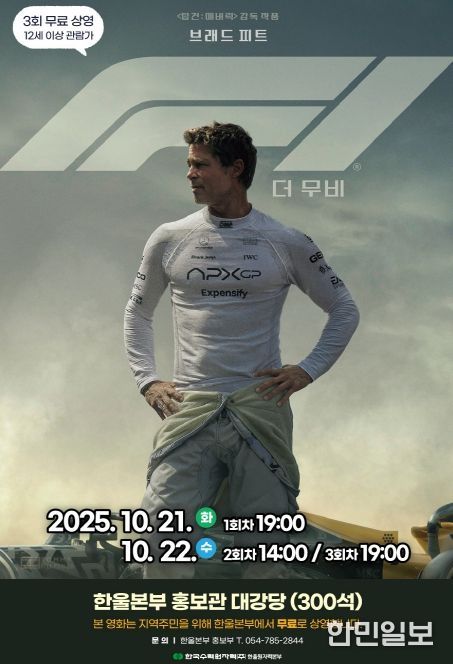 한민일보 서울포커스 김은금 기자 | 한국수력원자력(주) 한울원자력본부는 지역주민을 대상으로 10월 21일, 22일 양일간 한울에너지팜 대강당에서 영화'F1 더 무비'를 무료 상영한다.