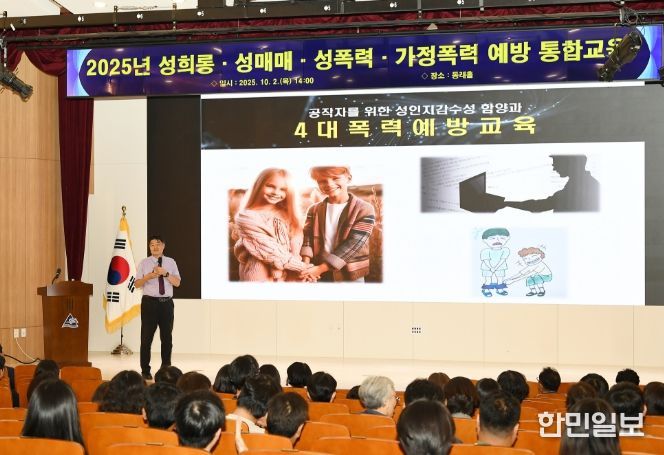 한민일보 서울포커스 임광현 기자 | 부산 동래구는 지난 2일 구청 동래홀에서 직원들의 성인지 감수성 향상과 4대 폭력(성희롱·성매매·성폭력·가정폭력) 예방을 위한 ‘폭력예방 통합교육’을 실시했다고 밝혔다.