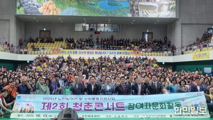 한민일보 서울포커스 김다남 기자 | 옥천군이 노인 일자리 및 사회활동 지원사업에 참여 중인 어르신들을 위한 문화행사 ‘제2회 청춘콘서트’를 13일 옥천체육센터에서 2,000여 명의 참여자를 대상으로 성황리에 개최했다.