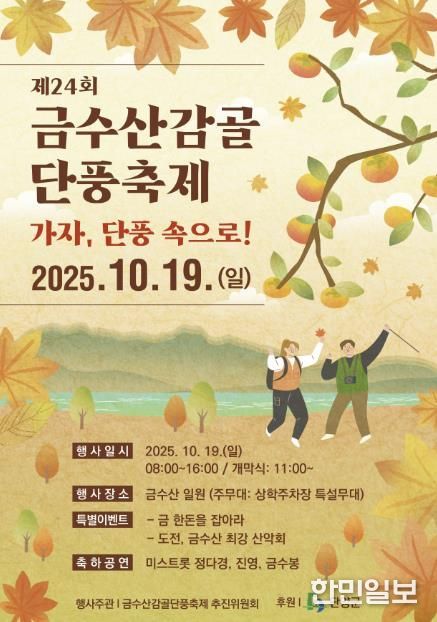 위원회 관계자는 “올해 축제는 주민이 함께 기획하고 참여하는 진정한 지역축제로 준비했다”며 “아름다운 금수산 단풍 아래에서 자연과 사람, 그리고 문화가 어우러지는 따뜻한 가을 축제가 되길 바란다”고 말했다.