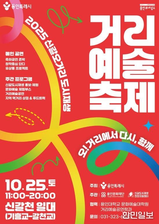한민일보 서울포커스 김성윤 기자 | 용인특례시는 25일 신갈오거리에 있는 신갈천 일대에서 ‘2025 신갈오거리 도시재생 거리예술축제’를 개최한다고 14일 밝혔다.