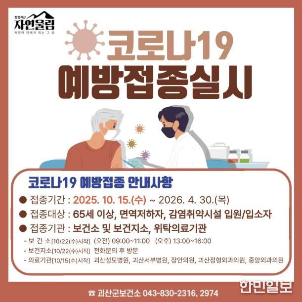 한민일보 서울포커스 김다남 기자 | 충북 괴산군은 2025-2026절기 코로나19 예방접종을 15일부터 실시한다고 밝혔다.