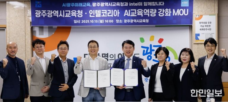 한민일보 서울포커스 박용남 기자 | 광주시교육청이 지난 13일 본청 상황실에서 인텔코리아와 AI교육역량 강화를 위한 업무협약(MOU)을 체결했다.