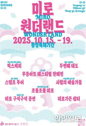 한민일보 서울포커스 박용남 기자 | 광주 동구는 오는 15일부터 19일까지 열리는 ‘제22회 광주 추억의 충장축제’ 개최 기간 동안 미로센터와 예술의 거리에서 시민 참여형 예술축제 ‘미로 원더랜드’를 개최한다고 밝혔다.