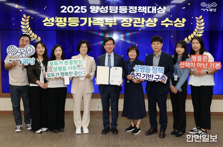 한민일보 서울포커스 박용남 기자 | 광주 광산구는 여성신문과 전국여성지방의원네트워크가 공동 주최하고 (사)지방자치발전소가 주관하는 ‘2025 양성평등정책대상’에서 성평등가족부 장관상을 받았다고 13일 밝혔다.