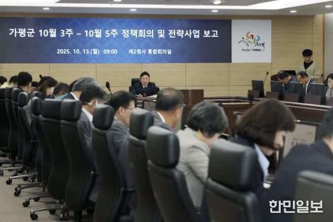 한민일보 서울포커스 최성훈 기자 | 가평군은 13일 2청사 통합회의실에서 ‘2025년 50대 전략사업 3분기 보고회’를 열고 주요 현안사업 추진상황을 점검하며 군정 운영 방향을 공유했다.
