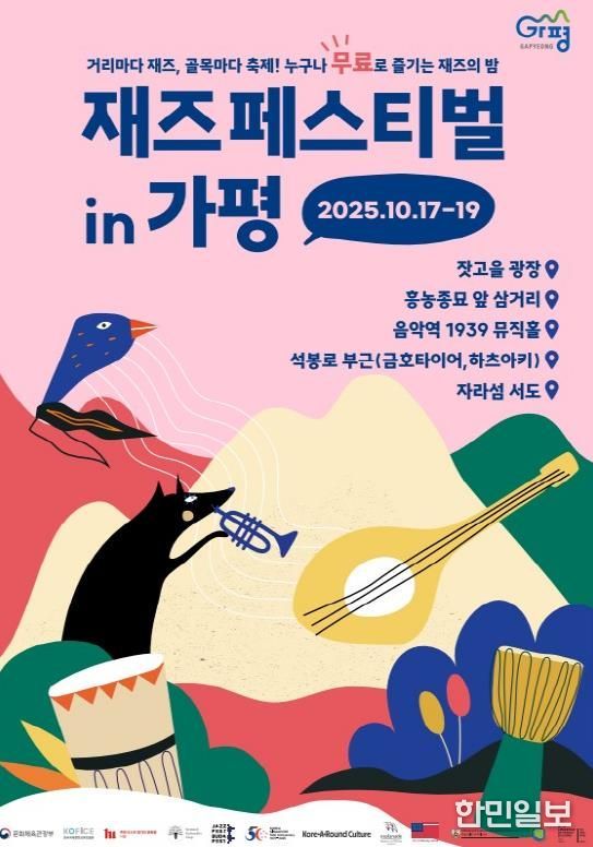 한민일보 서울포커스 최성훈 기자 | 가평군은 (사)문화현상과 함께 오는 17일부터 19일까지 3일간 ‘재즈페스티벌 in 가평’을 개최한다. 이번 축제는 누구나 부담 없이 즐길 수 있는 무료 음악 축제로, 가평읍내 곳곳(잣고을 광장, 흥농종묘 앞 삼거리, 음악역1939 뮤직홀, 자라섬 서도 등)을 재즈 선율로 물들일 예정이다.