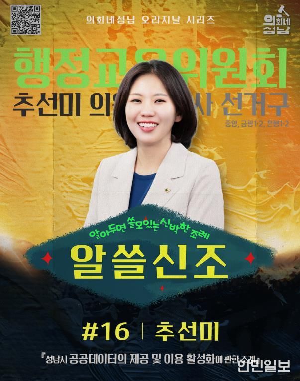 한민일보 서울포커스 김성혜 기자 | 성남시의회는 ‘알쓸신조-추선미 의원 편’영상을 10월15일 17시 시의회 공식 SNS에 게시한다.