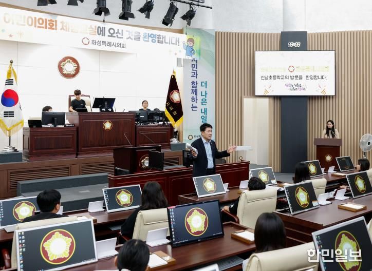 한민일보 서울포커스 진광성 기자 | 화성특례시의회는 13일, 남양읍에 위치한 신남초등학교 학생들을 대상으로 ‘어린이의회 체험 교실’을 운영했다.