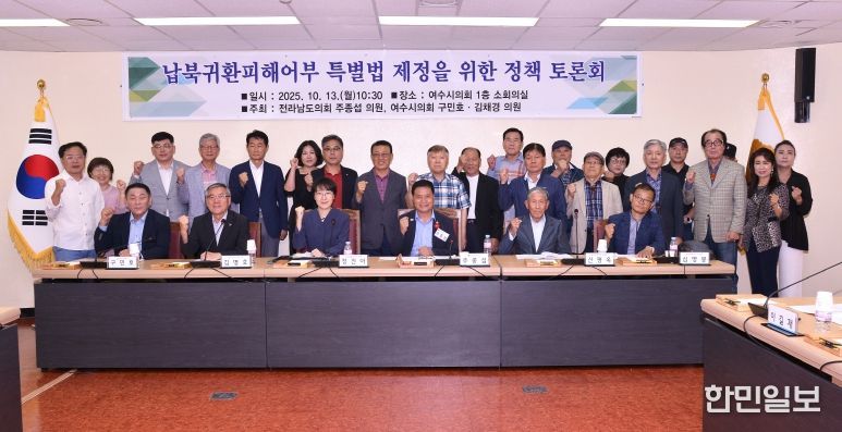한민일보 서울포커스 임광현 기자 | 여수시의회는 지난 10월 13일, 구민호·김채경 여수시의원과 주종섭 전남도의원 공동 주최로 ‘납북귀환피해어부 특별법 제정을 위한 정책토론회’를 개최했다.