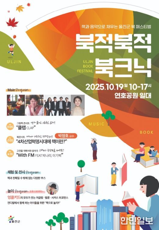한민일보 서울포커스 김서윤 기자 | 울진군는 오는 10월 19일 연호공원에서‘북적북적 북크닉’북페스티벌을 개최한다.