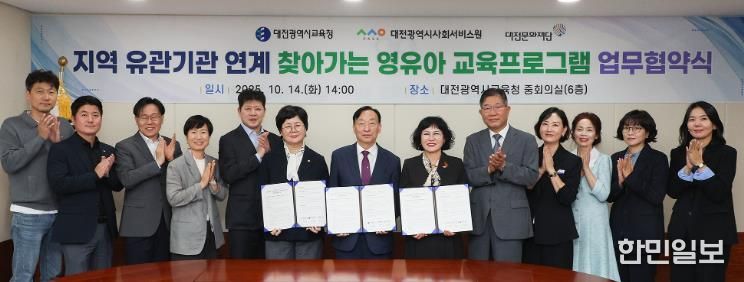 한민일보 서울포커스 유한희 기자 | 대전시교육청은 10월 14일 대전광역시사회서비스원 및 대전문화재단과'지역 유관기관 연계 찾아가는 영유아 교육프로그램'운영 업무협약을 체결했다고 밝혔다.