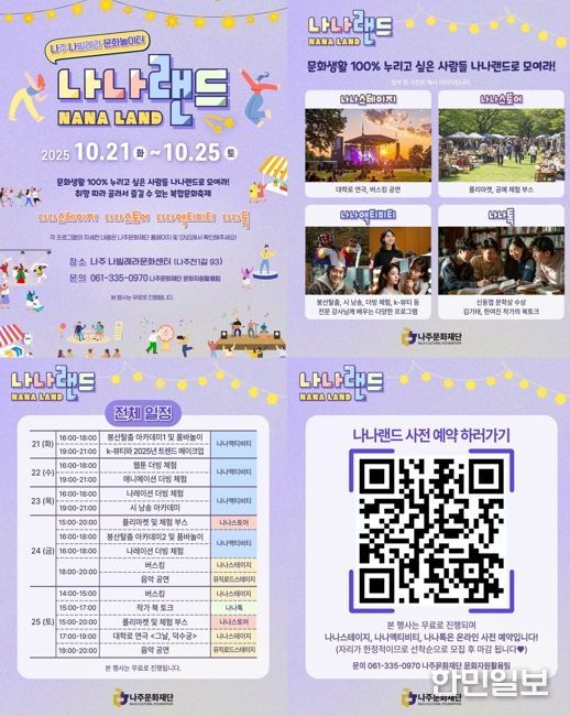 한민일보 서울포커스 임광현 기자 | 나주문화재단이 시민이 주체가 되어 참여하고 즐기는 복합문화축제 ‘나나랜드’를 개최한다.