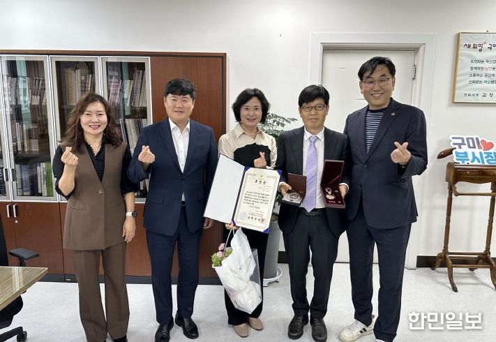 한민일보 서울포커스 김봉순 기자 | 구미시는 지난 14일 시청 부시장 집무실에서 6·25전쟁에 참전해 무공을 세운 故안광수 중위 유족에게 국방부장관을 대신해 화랑무공훈장과 훈장증을 전수했다. 이 날 전수식에는 정성현 구미시 부시장, 故안광수 중위의 유족 장녀 안기열, 장남 안상기, 황두영 도의원이 참석했다.