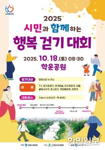 한민일보 서울포커스 김성윤 기자 | 안양시는 오는 18일 오전 8시 30분부터 학운공원 운동장(희성초 건너편)에서‘시민과 함께하는 행복걷기대회’를 개최한다고 15일 밝혔다.
