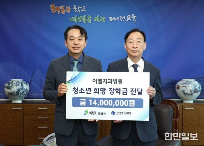 한민일보 서울포커스 유한희 기자 | 대전시교육청은 10월 15일 이엘치과병원으로부터 학생장학금 1,400만원을 전달받았다고 밝혔다.
