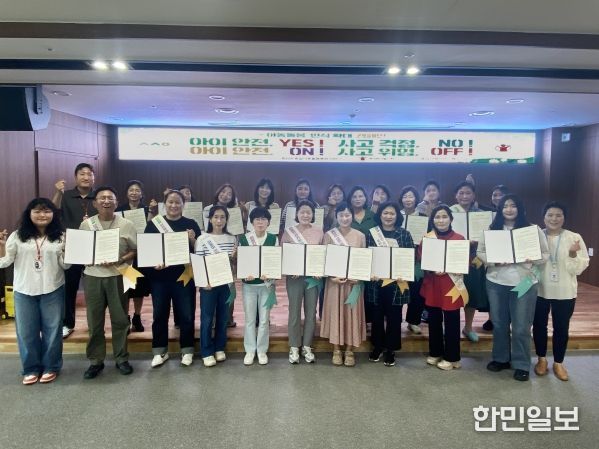 이어 진행된 아동돌봄 인식확대 캠페인 및 서약식에서는 ‘아이 안전 YES! 사고걱정 NO! 아이 안전 ON! 위험 OFF!’구호 아래 20개 기관이 참여해 공동 서약을 진행하고, 안전문화 실천 어깨띠를 착용한 기념촬영식을 가졌다.