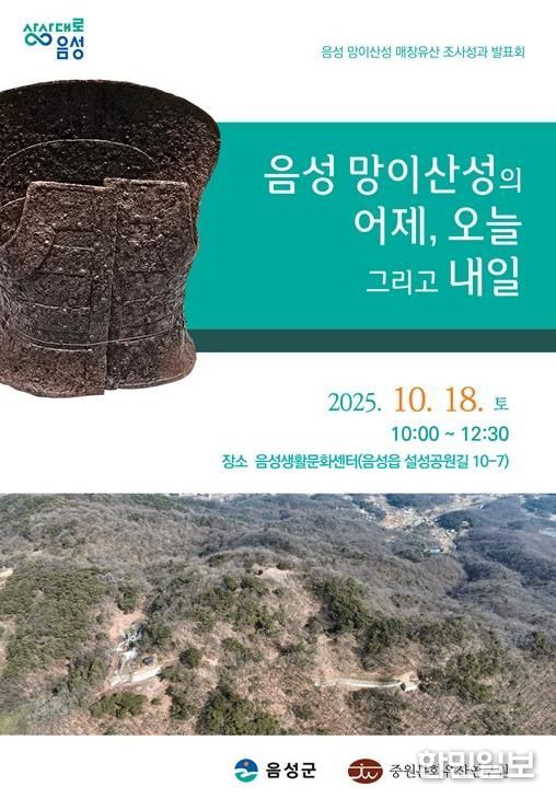 한민일보 서울포커스 김다남 기자 | 음성군은 이달 18일 오전 10시 음성생활문화센터에서 ‘음성 망이산성 매장유산 조사성과 발표회’를 개최한다고 밝혔다.