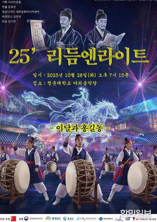 한민일보 서울포커스 유돈상 기자 | 홍주문화관광재단은 오는 28일 오후 7시, 청운대학교 야외음악당에서 ‘25’ 리듬엔라이트(부제: 이달과 홍길동)’ 공연을 통해 홍성의 역사적 인물들과 문화유산을 새로운 시각으로 재조명하며, 지역 기반 예술 콘텐츠의 발전을 도모한다.