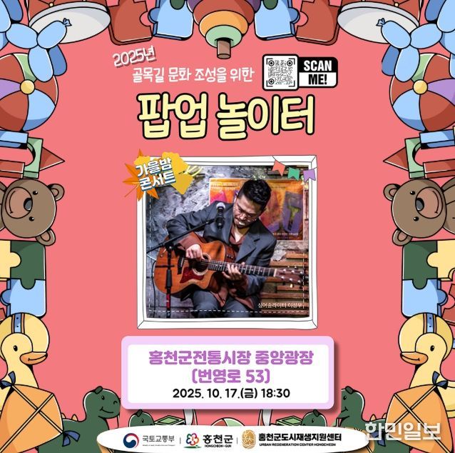 한민일보 서울포커스 진광성 기자 | 홍천군은 오는 10월 17일 오후 6시 30분, 홍천 전통시장 중앙광장에서 가을의 정취와 음악이 어우러지는‘가을밤 콘서트’를 개최한다.