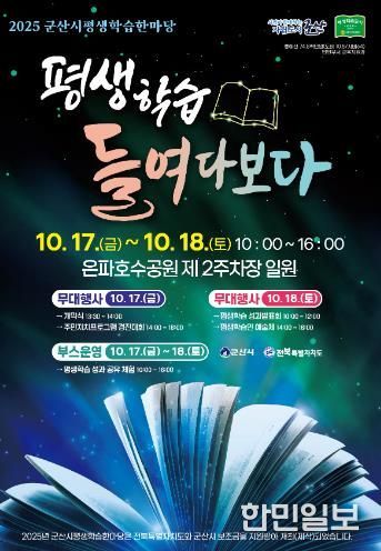 한민일보 서울포커스 김용택 기자 | 군산시가 17일~18일 2일간 은파호수공원 제2주차장 일원에서 ‘2025년 군산시평생학습한마당’을 개최한다.