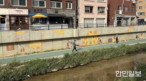 한민일보 서울포커스 김봉순 기자 | 방학천(금강아미움 맞은편~방학교) 옹벽 약 360m 구간이 걷고 싶고 머무르고 싶은 산책길로 탈바꿈했다.